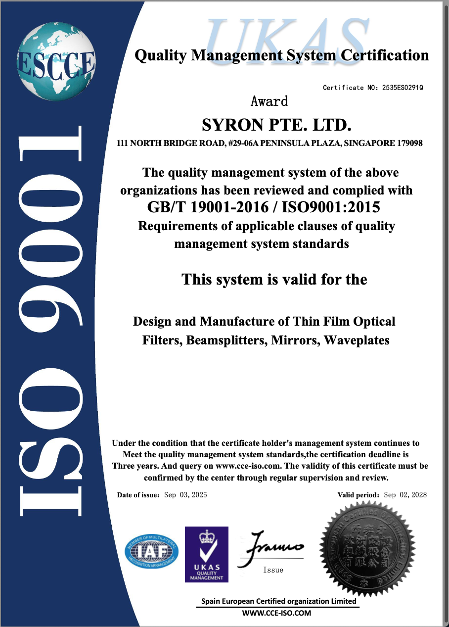 SyronOptics : Stocked & Custom Optical Thin Film Products