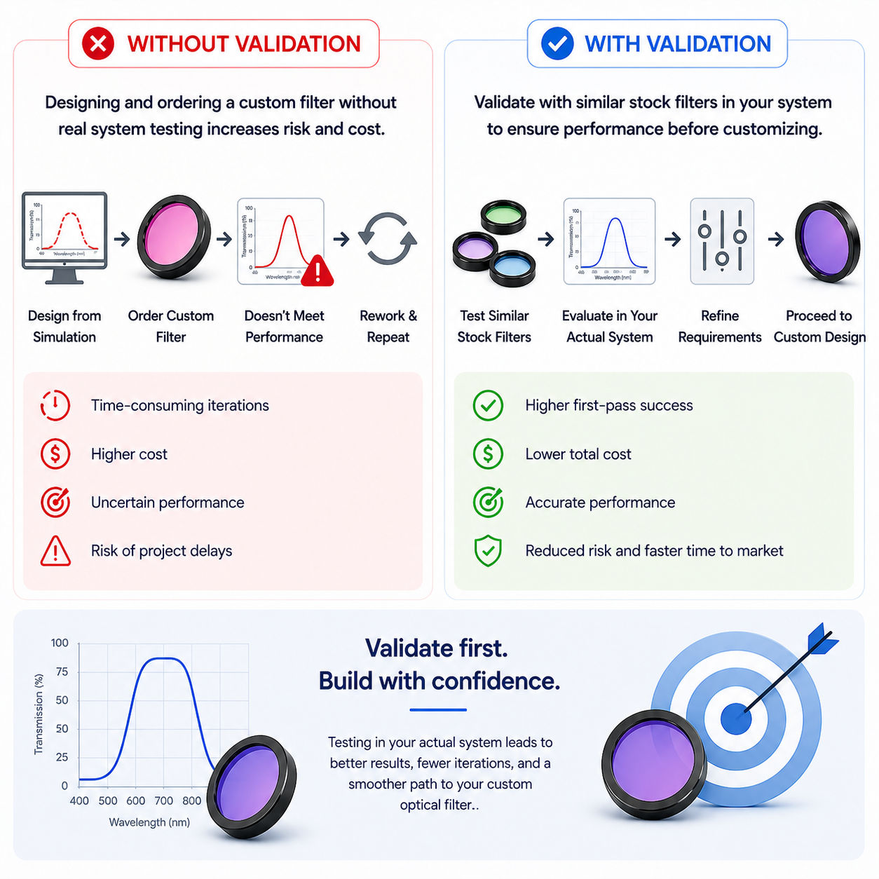 Validating your design helps reduce risk and improves the accuracy of your final custom optical filter.