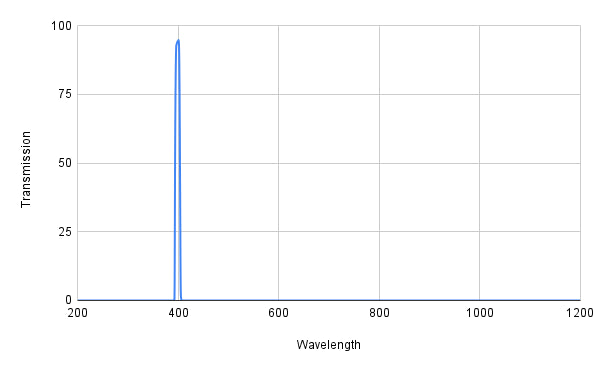 Perfect for monochrome imaging applications, high-resolution spectroscopy, precision fluorescence measurements, and analytical instrumentation. The 400nm wavelength is particularly valuable for precision optical measurements and applications requiring complete elimination of spectral crosstalk at the UV-violet boundary.