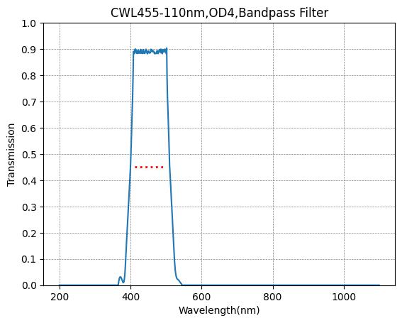 BP455-110 Bandpass Filter(CWL=455nm,FWHM=110nm)
