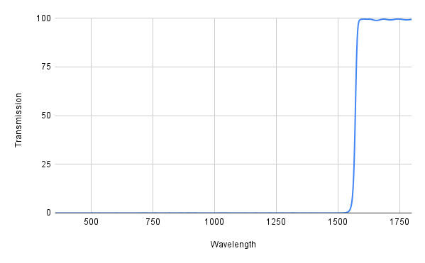 - Passband: 1590-2500nm with >95% transmission